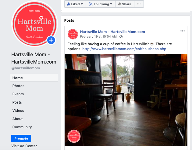 With so many social media websites available to us now, you can create a business profile account for each social media website and include your website link on there. It's a way to market your website or blog for free because it's free to create these accounts! Utilize them. (A Facebook business page is and should be separate from your personal account.) Other social media websites that you should create a business account for include: LinkedIn, Facebook, Instagram, Pinterest and latest but greatest, TikTok. Post regularly on them and always remember to include your website link or blog whenever you do. See an example of a business facebook page that I created for HartsvilleMom.com: